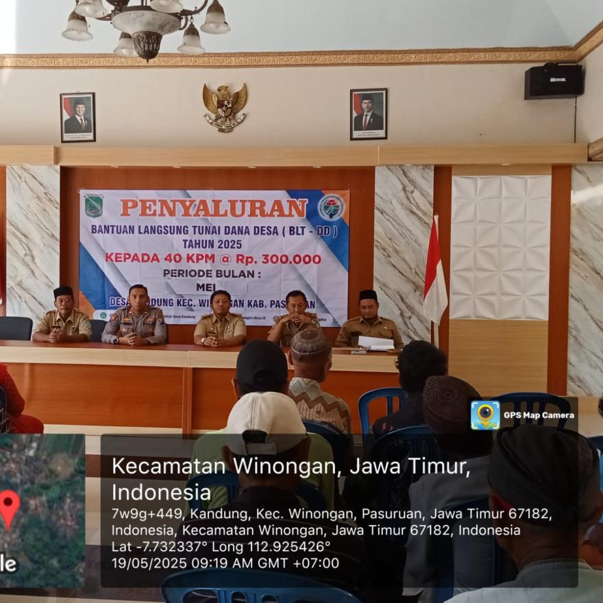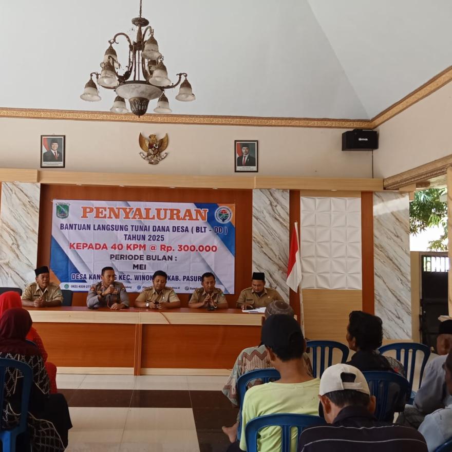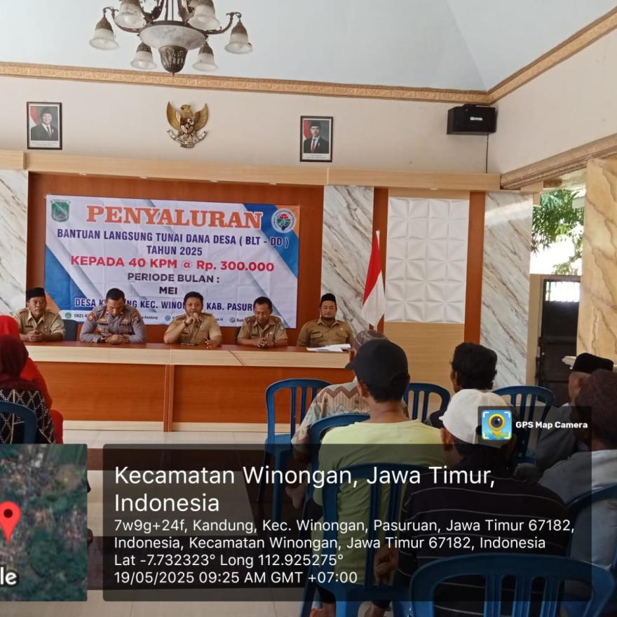 Pemerintah Desa Kandung telah melaksanakan kegiatan penyaluran bantuan langsung tunai dana desa (BLT-DD) tahun 2025, Bantuan Langsung Tunai Dana Desa adalah kegiatan pemberian bantuan langsung berupa dana tunai yang bersumber dari Dana Desa kepada Keluarga Penerima Manfaat (KPM) dan diputuskan melalui Musyawarah Desa. Kegiatan Penyaluran Bantuan Langsung Tunai Dana Desa (BLT-DD) dilaksanakan pada hari Senin, 19 Mei 2025 yang bertempat di Balai Desa Kandung dan dimulai pukul 09.00 WIB s/d 11.00 WIB. Kegiatan ini dihadiri oleh Bapak Camat Winongan (Bapak M.Ganis Subintang, S, STP, M.Si), Bapak Kapolsek Winongan /yang mewakili, Pendamping Lokal Desa, Bapak Kepala Desa Kandung beserta jajaran perangkatnya dan Keluarga Penerima Manfaat (KPM).