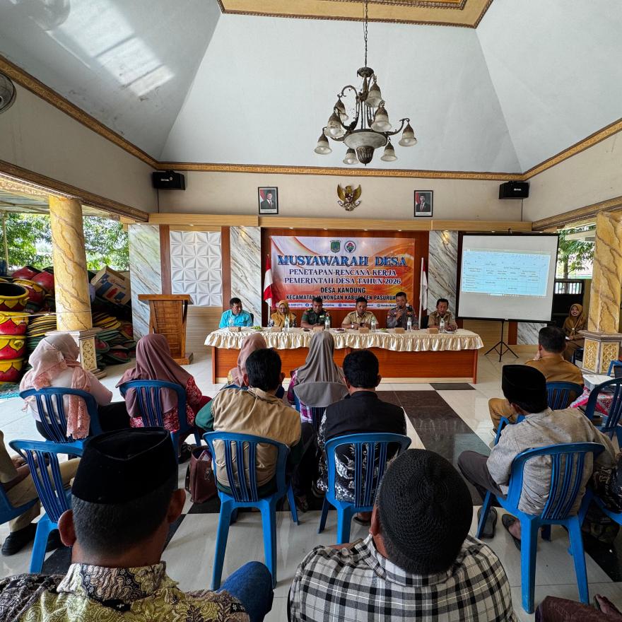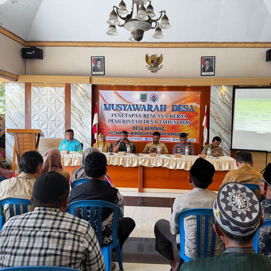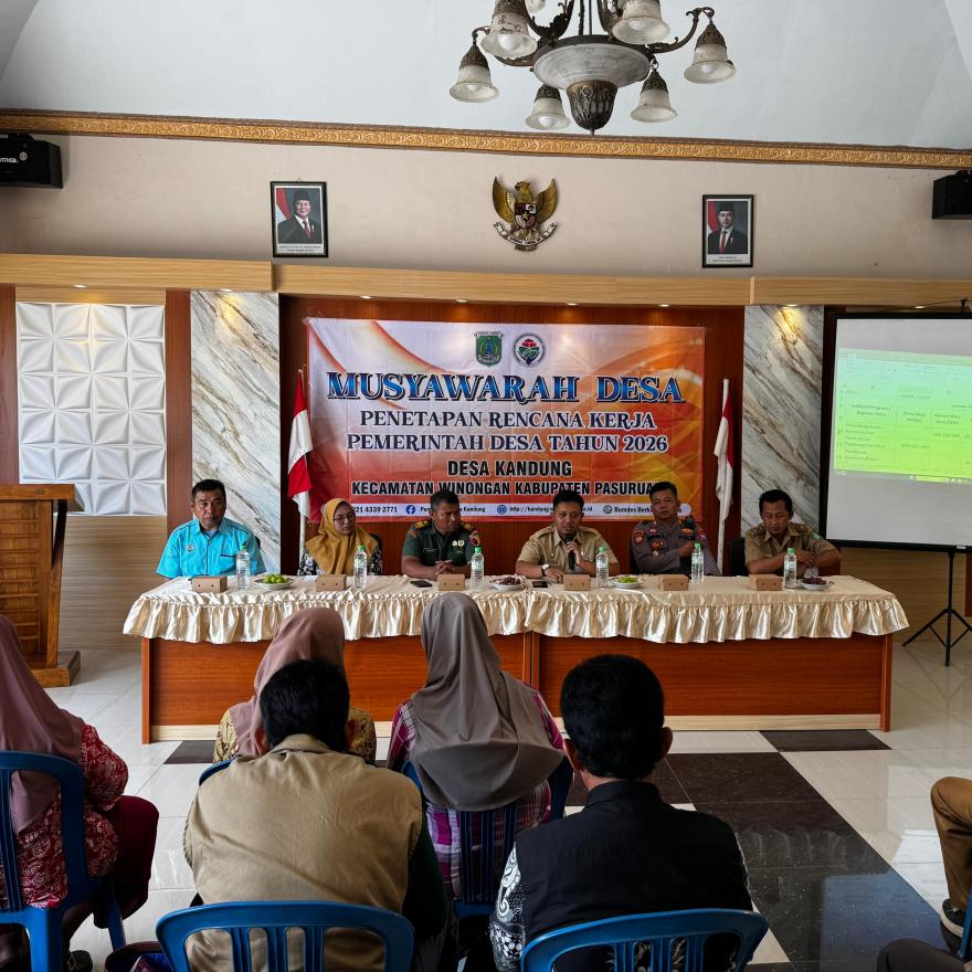 Pemerintah Desa Kandung telah melaksanakan kegiatan Musyawarah Desa PENETAPAN RENCANA KERJA PEMERINTAH DESA TAHUN 2026 pada Selasa, 16 September 2025 bertempat di Balai Desa Kandung pukul 09.00 WIB s/d selesai. Kegiatan ini dihadiri oleh Camat Winongan Bapak M.Ganis Subintang, S.STP. M.Si beserta jajarannya, Kapolsek Winongan AKP Nanang Abidin S.H, Danramil Winongan, Pendamping Lokal Desa, Kepala Desa Kandung beserta jajaran perangkat dan staffnya, Ketua BPD dan anggota, Ketua RT dan RW, serta Tokoh Masyarakat dan Warga Masyarakat Desa Kandung.